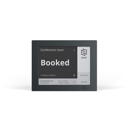 Joan 6 RE to nowa generacja inowacyjnego urządzenia do zarządzania rezerwacjami pomieszczeń, które dzięki wbudowanej baterii i obsłudze Wi-Fi jest całkowicie bezprzewodowe, energooszczędne i nie wymaga ingerencji w strukturę ściany przy montażu!