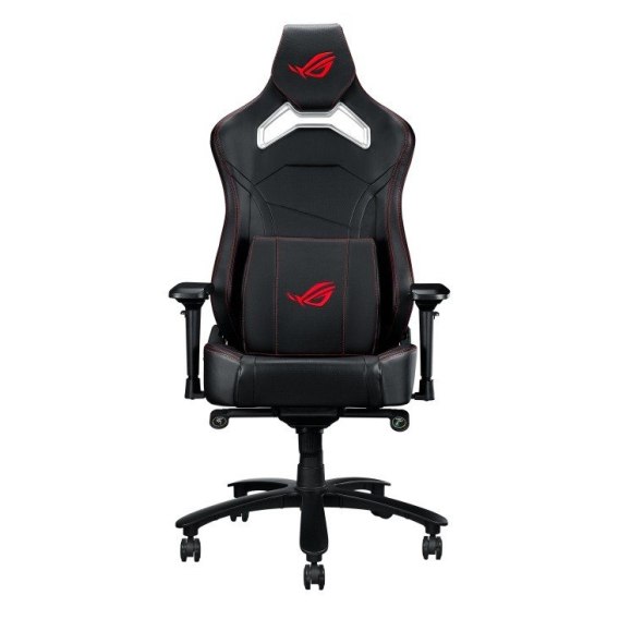 Fotel gamingowy ROG Chariot X Core w stylu samochodu wyścigowego, wyposażony w regulowany zagłówek z pianki o dużej gęstości, podparcie lędźwiowe z pianki zapamiętującej kształt, podłokietniki 4D, mechanizm przechylania, trwały podnośnik gazowy klasy 4 i trwałą, wysokiej jakości skórę PU zapewniającą najwyższej jakości wrażenia z gry.