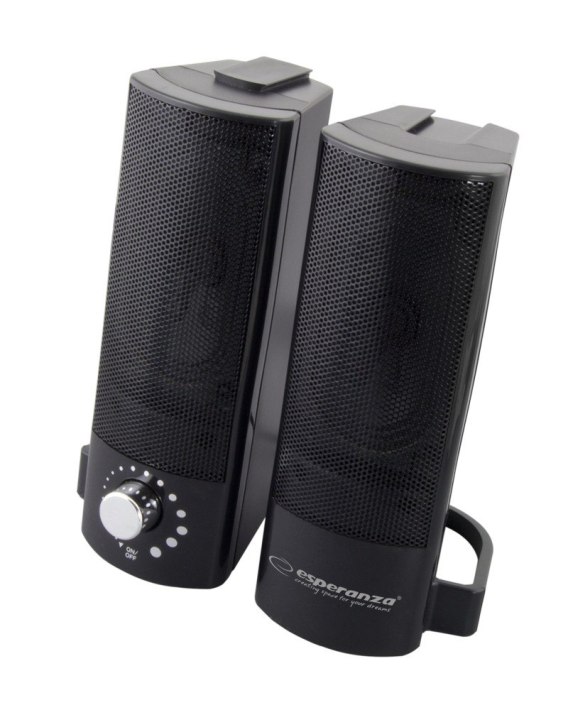 Wysokiej jakości stereofoniczne głośniki do notebooków i komputerów stacjonarnych. Posiadają zaczep umożliwiający ich połączenie i stworzenie soundbar. Gwarantują czyste i naturalne brzmienie dźwięku. Współpracują ze wszystkimi komputerami posiadającymi wyjście głośnikowe i wyjście USB. Posiadają wbudowaną regulację głośności. Wysokiej jakości materiały użyte do produkcji zabezpieczają przed elektryzowaniem się i przed generowaniem zakłóceń elektromagnetycznych.