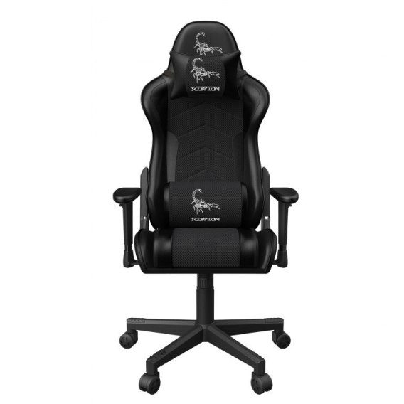 - Mocna nylonowa podstawa, gąbka w oparciu i zagłówku oraz formowana pianka wewnątrz siedziska