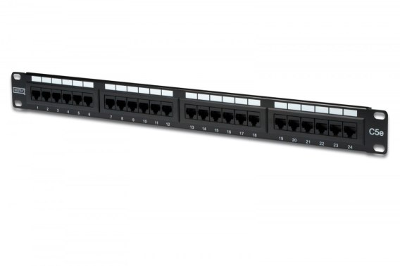 Patch-panel 24-portowy ze wspornikiem przeznaczony do montażu w szafach rack 19" (483 mm) firmy DIGITUS