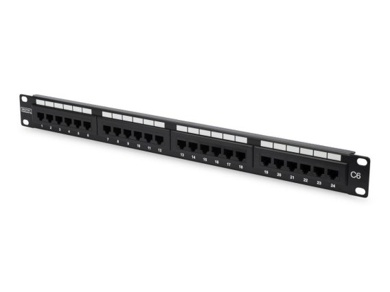 Patch-panel 24-portowy ze wspornikiem przeznaczony do montażu w szafach rack 19" (483 mm) firmy DIGITUS