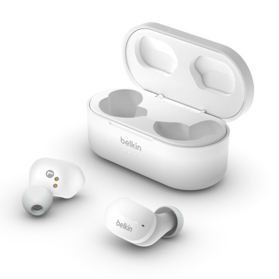 - Doświadcz potężnego basu oraz krystalicznie czystych tonów średnich i wysokich dźwięku Belkin. Nasze True Wireless Earbuds są dostarczane z trzema rozmiarami końcówek dousznych, zapewniając całodzienny komfort i izolację od hałasu dzięki szczelnemu dopasowaniu do uszu.