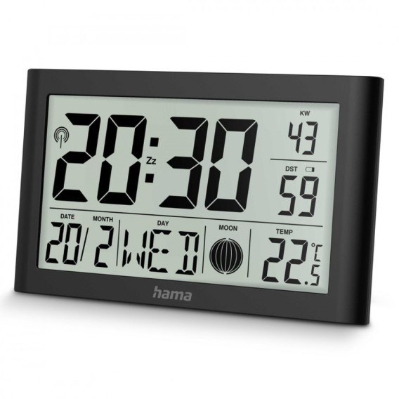 Wyświetla godzinę, minuty, sekundy oraz kalendarz z dniem tygodnia i fazą księżyca