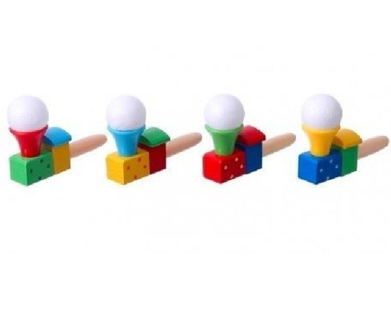 Drewniana dmuchawka logopedyczna wykonana z drewna i pomalowana bezpiecznymi farbami.