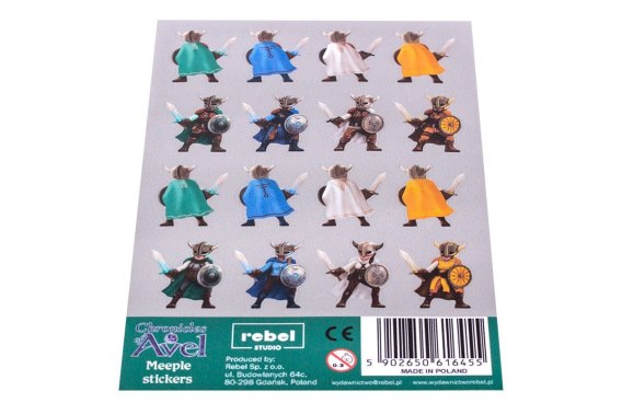 Jak ze zwykłego mepla zrobić prawdziwego bohatera? Wystarczy ozdobić go specjalną naklejką! Kroniki zamku Avel - Naklejki na meple to estetyczny dodatek, dzięki któremu Wasza gra nabierze jeszcze więcej klimatu. Zestaw zawiera 16 naklejek, odpowiadających kolorami pionkom dostępnym w grze.