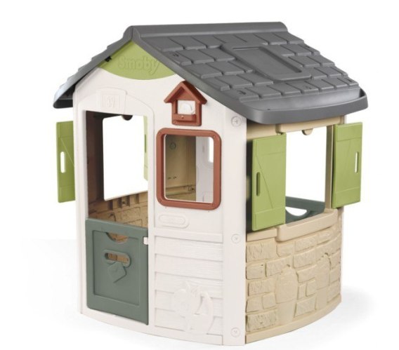 Domek z otwieranymi okiennicami, frontowymi drzwiami z otworem na listy. Oryginalny wygląd dzięki wizerunkom zwierząt na ścianach. 54% użytego do produkcji domku plastiku pochodzi z recyklingu. Odporna i stabilna konstrukcja. Powłoka ANTI-UV chroniąca przed przed blaknięciem kolorów na słońcu. Wysokość:132cm. Do domku pasują wszystkie akcesoria dodatkowe Smoby. Wyprodukowany we Francji.