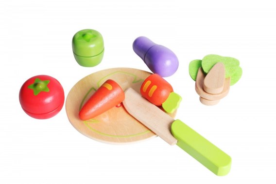 Nie ma nic zdrowszego od świeżych warzyw! Użyj zabawkowego noża do pokrojenia zielonej papryki, pomidorów i innych warzyw. Kawałki warzyw są mocowane na rzepy i można je rozdzielać, co zwiększa realizm. W zestawie zabawny nożyk, talerzyk i pięć zabawkowych ważyw. Całość wykonana z drewna malowanego bezpiecznymi, nietoksycznymi farbami wodnymi całkowicie nieszkodliwymi jeżeli mały kucharz postanowi nadgryźć swoje dzieło. Zabawka wspaniale rozwijają wyobraźnię dziecka pozwalając mu na uwielbiane przez maluchy odgrywanie ról i ćwiczenie umiejętności przydatnych w całym życiu. Zabawa w grupie przyjaciół pozwala kształtować umiejętności społeczne i umacnia więzy rodzinne.