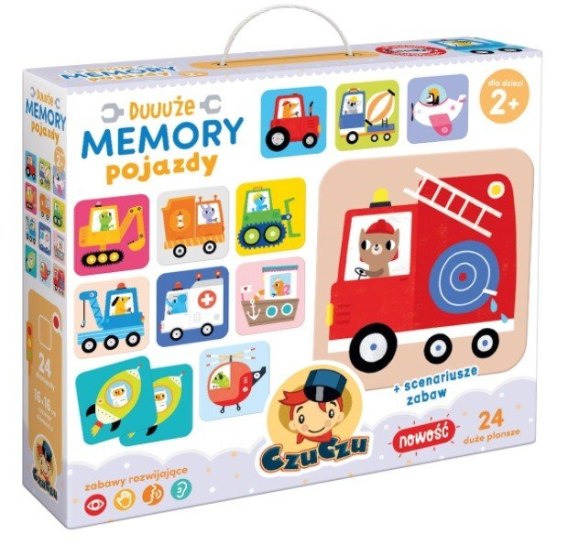 Dwulatek jest uważnym obserwatorem otaczającego go świata. Codziennie poznaje nowe słowa i staje się coraz bardziej samodzielny. Duuuże memory Pojazdy rozwijają spostrzegawczość, wyobraźnię i pamięć. To doskonały sposób na naukę nowych słów.