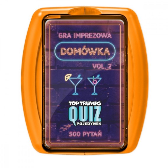 Gra Top Trumps Quiz Domówka to najlepszy sposób na rozkręcenie każdej imprezy! Sprawdź swoją wiedzę w wyjątkowym quizie. Domówka to aż 500 szalonych pytań w kategoriach takich jak: wiedza, nauka, nazwy, lifestyle, film, sport, muzyka, liczby.