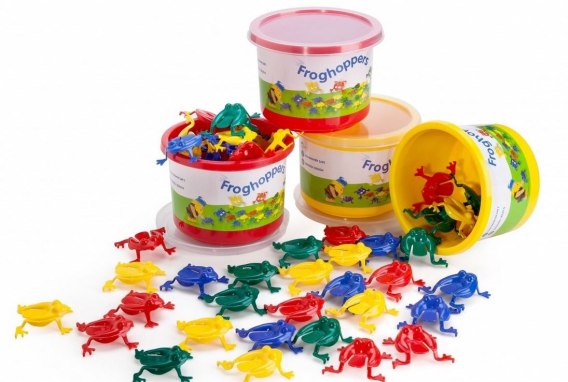 Gra żabki to wspaniała gra dla całej rodziny. W jednej z gier wystarczy przycisnąć żabkę, tak aby wskoczyła do wiaderka. Kto trafi najwięcej żabek do wiaderka, ten wygrywa. Zestaw składa się z 16 żabek w 4 kolorach oraz plastikowego pudełka z wieczkiem. Zabawka rozwija zdolności manualne, precyzję i ćwiczy refleks. Zabawka została zaprojektowana w Szwecji, w firmie która za priorytet stawia bezpieczeństwo swoich małych klientów.
