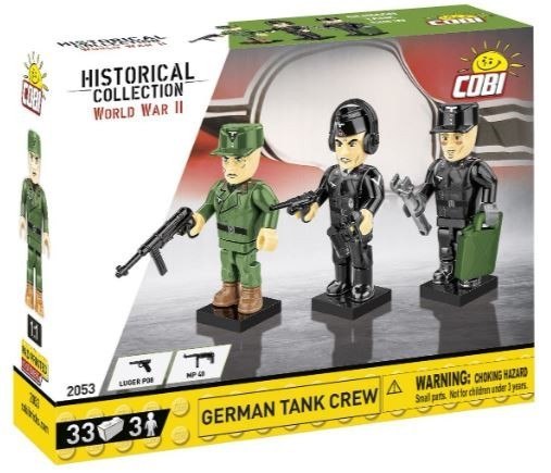 Zestaw trzech figurek COBI przedstawiający niemieckich żołnierzy z okresu drugiej wojny światowej służących w jednostkach pancernych. Znajdziemy tutaj członka załogi działa pancernego (zielony uniform) oraz czołgistów. Przy pomocy tego zestawu można zacząć kompletować pełne załogi wydawanych przez COBI czołgów i dział samobieżnych. Figurki posiadają akcesoria oraz podstawki.