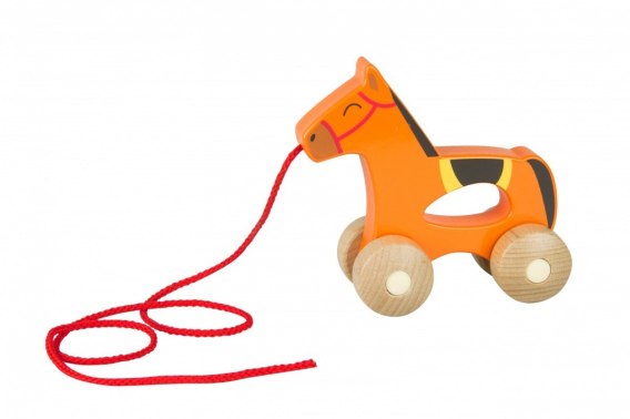 Konik na sznurku może stać się najlepszym przyjacielem każdego malucha. Możesz się z nim bawić i zabierać na spcer po pokoju. Wykonany w całości z drewna pokrytego bezpiecznymi, nietoksycznymi farbami wodnymi. Może wpływać pozytywnie na rozwój ruchowy zachęcając dziecko do pierwszych spacerów. Drewniane zwierątka do ciągnięcia na sznurku to klasyczna zabawka o niesłabnącej popularności od lat ciesząca się zainteresowaniem dzieci. Doskonały pomysł na prezent!