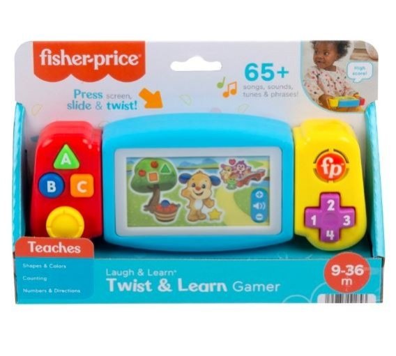 Wejdź na nowy poziom zabawy z Konsolą ABC Małego Gracza Ucz się i śmiej! od Fisher-Price. Ta interaktywna zabawka edukacyjna wygląda jak prawdziwa konsola do gry, ale zawiera elementy dostosowane do dzieci: przyjaciół Ucz się i śmiej! na ekranie, 2 uchwyty kontrolera do przekręcania i przesuwania oraz mnóstwo przycisków do naciskania. Gdy maluch gra, aktywuje kolorowe światełka, piosenki i wypowiedzi edukacyjne, które uczą liczenia od 1 do 10, kształtów i kolorów. Naciśnij przycisk globusa, aby wybrać język: polski, węgierski, czeski, słowacki lub angielski. Zabawkowa przenośna konsola do gry ze światełkami, muzyką i przyjaciółmi Ucz się i śmiej! do wczesnej zabawy w odgrywanie ról Maluchy kontrolują zabawę dzięki przyciskom aktywującym kolorowe światełka, muzykę i dźwięki Nauka i zabawa z muzyką: ponad 65 aktywacji piosenki, dźwięki i wypowiedzi pomaga dziecku w nauce liczenia od 1 do 10, kształtów i kolorów. Naciśnij przycisk globusa, aby wybrać język: polski, węgierski, czeski, słowacki lub angielski. Realistyczny wygląd: przesuwaj joystick, naciskaj pad kierunkowy i przesuwaj lub przekręcaj uchwyty kontrolera Pomaga w rozwijaniu zręczności i wprowadza zasadę przyczyny i skutku dla dzieci w wieku od 9 miesięcy do 3 lat.