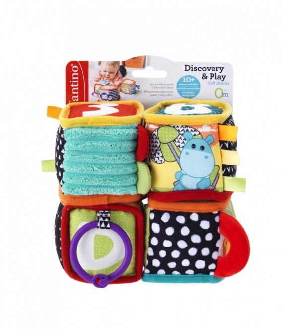 4 miękkie kostki ze zwierzątkami i wieloma dodatkami to aż 10 różnych zabaw sensorycznych i wiele godzin odkrywania! Kostki pomogą poznać dziecku zwierzęta, podstawowe cyfry, literki, kolory, i kształty.