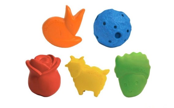 - Opakowanie zawiera 5 ekologicznych kredek, które możemy nałożyć na palec, 4 karty do kolorowania.