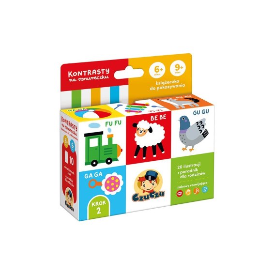 Hej, maluchy i rodzice! Mamy świetne pomysły na zabawy ze starszym niemowlakiem: oglądajcie, czytajcie, słuchajcie, mówcie, pokazujcie i odkrywajcie razem świat! Książeczka do pokazywania Kontrasty na sznureczku dla dzieci w wieku 6-9 miesięcy to książeczka, która pozwoli Wam w wyjątkowo przyjemny sposób spędzać razem czas i zainspiruje do mnóstwa zabaw.