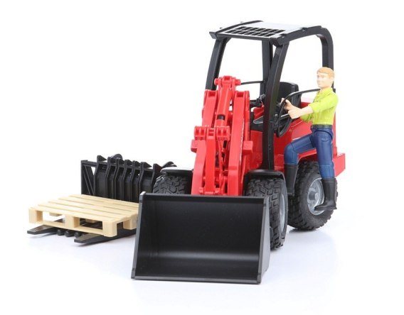 Jednym z największych atutów rolniczych pojazdów Bruder jest duża liczba dodatkowych akcesoriów, które zwiększają atrakcyjność zabawy. Doskonałym tego przykładem może być prezentowana ładowarka Schaffer z figurką i akcesoriami. W skład zestaw wchodzi pojazd wyposażony w skrętny przegub i wysuwane ramię ładowacza, figurka operatora maszyny oraz dodatkowe akcesoria tj. wymienna końcówka ładowacza czy zabawkowa paleta.