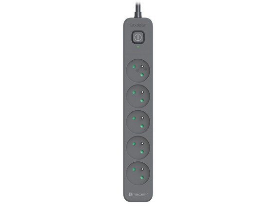 Listwa zasilająca antyprzepięciowa TRACER Power Line+ 5,0 m Graphite (5 gniazd)