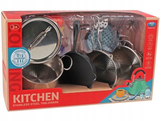 Ten niezwykły zestaw zawiera wszystko, czego potrzebujesz do udanej zabawy w gotowanie. Garnek, patelnia, pokrywki, durszlak, łyżki do gotowania, plastikowe warzywa oraz podkładka z materiału - to tylko część akcesoriów, które znajdziesz w tym zestawie. Dzięki nim Twoje dziecko może poczuć się jak prawdziwy szef kuchni, rozwijając przy tym swoje umiejętności kulinarne i kreatywność.