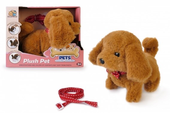 Piesek chodzący na smyczy brązowy 14 cm