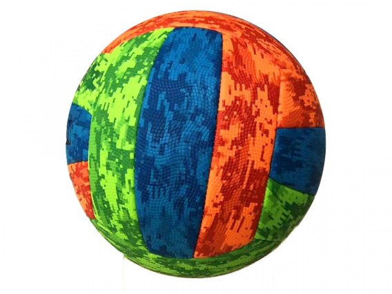 Piłka szyta maszynowo. Miękka i lekka. Wykonana z syntetycznej skóry. Trwała powłoka Soft Touch, która zapewnia optymalne odbicie i wysoki komfort gry. pompowanie standardową igłą i pompką. Średnica piłki: ok 23 cm.