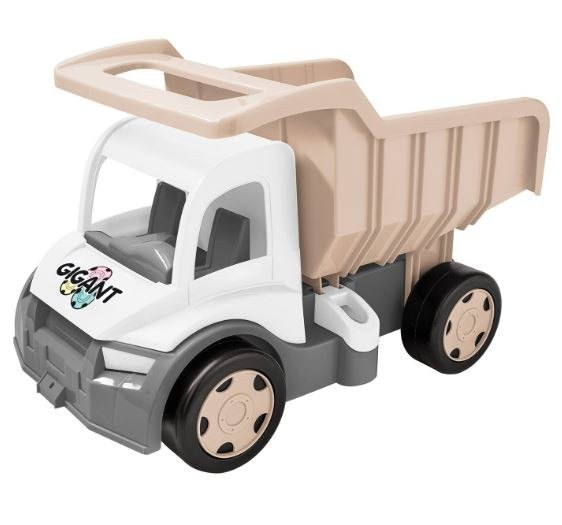 Gigant Wywrotka w kolorze jasnego beżu, szarości oraz bieli to fantastyczny, duży samochód o długości 55 cm.