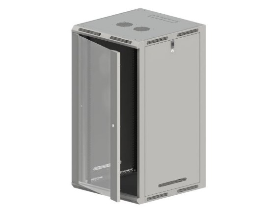 Szafy wisząco-stojące 19" do samodzielnego montażu, przeznaczone do zastosowań wewnątrz pomieszczeń, dostępne w 3 głębokościach i 6 wysokościach użytkowych, ze szklanymi drzwiami.