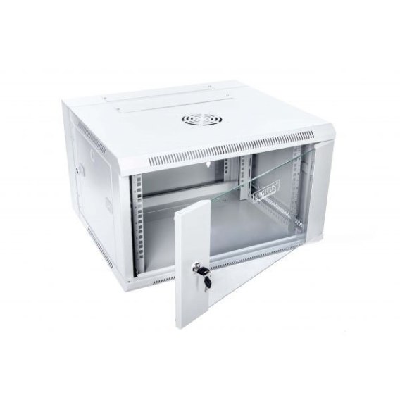 Szafa krosowa wisząca dzielona (dwusekcyjna) 19" firmy DIGITUS Professional. Wysokość 6U, szer x wys x gł: 600 x 368 x 550 [mm].