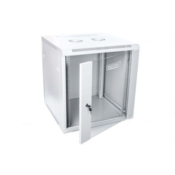 Szafa krosowa wisząca niedzielona 19" firmy DIGITUS Professional. Wysokość 12U, szer x wys x gł: 600 x 635 x 600 [mm].