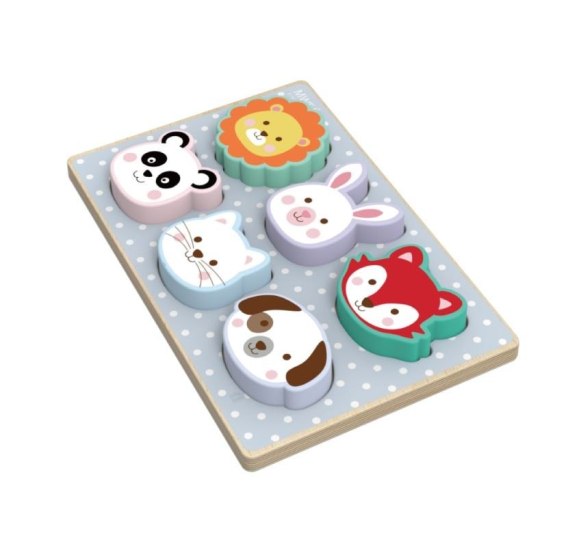 Każdy maluch będzie zachwycony dopasowując kształty lwa, pieska, kota, małej pandy, lisa i króliczka. Wykorzystanie tych niezwykle uroczych i lubianych zwierzątek sprawi, że dziecko będzie chciało wracać do zabawy układanką.