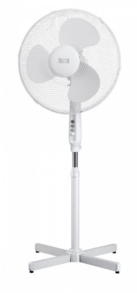 POWIAŁO CHŁODEM! A to wszystko dzięki wentylatorowi stojącemu Teesa! Wybór jednego z trzech trybów prędkości gwarantuje, że dostosujesz temperaturę do swoich potrzeb. Duża średnica śmigieł, napędzanych silnikiem o mocy nominalnej 45 W, w połączeniu z automatyczną oscylacją 90° sprawiają, że wentylator z łatwością schłodzi większe pomieszczenie.
