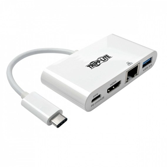 Wieloportowy adapter USB-C HDMI, port USB 3.2 Gen 1, Gigabit Ethernet, ładowanie PD 60 W, HDCP U444-06N-HGU-C Biały
