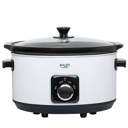 Wolnowar to urządzenie gotujące potrawy w niższej temperaturze niż tradycyjne gotowanie. Wolnowar Adler 6413r to idealne rozwiązanie dla osób chcących aby potrawy nie traciły walorów smakowych i zdrowotnych podczas gotowania. Posiłki przygotowane w wolnowarze bogate są w mikroelementy i witaminy które ulegają zniszczeniu podczas tradycyjnego gotowania w temperaturach zbliżonych do temperatury wrzenia. Wyjmowana ceramiczna misa łatwa jest do umycia. Jej naturalny surowiec nie zmienia smaku potraw i gwarantuje równomierne rozprowadzenie ciepła oraz długie jego utrzymanie w naczyniu. Pomimo, że urządzenie jest gorące podczas pracy, nienagrzewający się uchwyty umożliwia komfortowe użytkowanie. Szklana pokrywa wykonana jest z bezpiecznego hartowanego szkła, ułatwia nadzorowanie procesu gotowania bez otwierania misy. Objętość misy - 5,8 litra - pozwala na przygotowanie jednogarnkowego dania dla dużej rodziny albo na 2 dni. Urządzenie ma 3 poziomy temperatury gotowania: niski, średni i wysoki, który dopasujesz do typu gotowanej żywności.