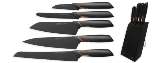 Linia noży Edge to połączenie eleganckiego i nowoczesnego wzornictwa z innowacyjną funkcjonalnością. Ergonomiczna rękojeść zapewniająca pewny chwyt. Ich ostrza wykonane są z wysokiej jakości stali, dodatkowo szlifowane w celu przedłużenia ich trwałości. Ostrze pokryte specjalną nieprzywieralną powłoką zapobiegającą przywieraniu jedzenia.