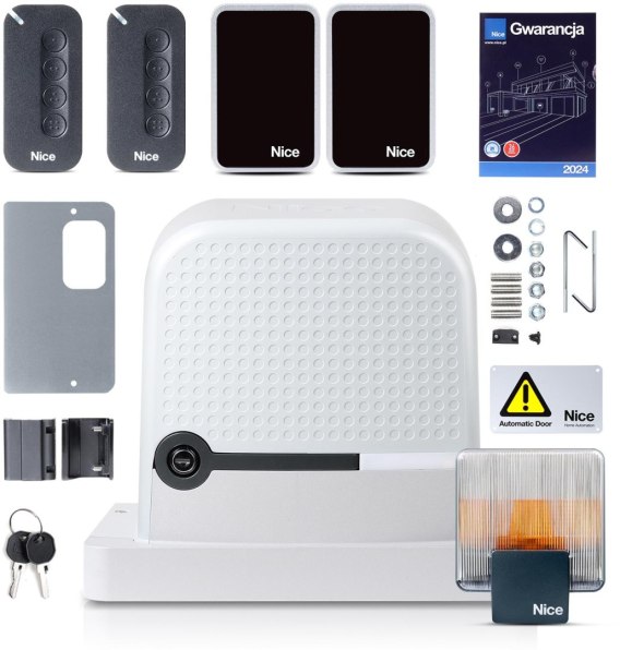 - Uwagi do gwarancji: Samodzielna instalacja produktu Nice = rezygnacja z gwarancji. Aby obowiązywała gwarancja na 3 lata, montaż musi wykonać certyfikowany instalator Nice, który dokona przeglądu między 10, a 12 miesiącem od montażu. Brak przeglądu = rok gwarancji producenta.