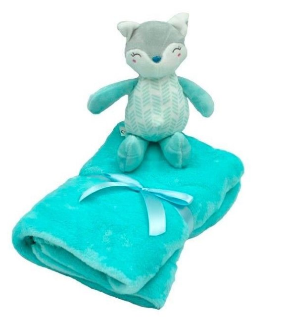 Przedstawiony zestaw to prześliczny prezent dla nowonarodzonego maluszka, mięciutki miś - grzechotka oraz kocyk są wykonane z wyjątkowo mięciutkiego i milutkiego w dotyku materiału.