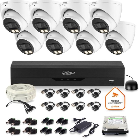Zestaw monitoringu Dahua 8x kamera kopułkowa HAC-HDW1500T-IL-A-0280B-S2 IR 40m 51mp