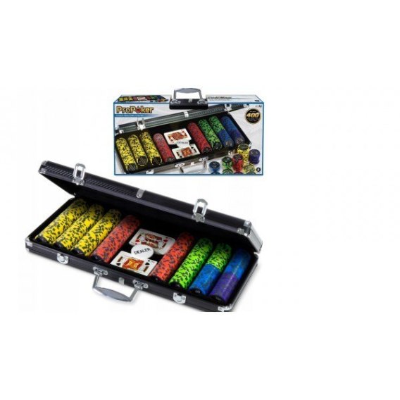 Zestaw 400 profesjonalnych, 13,5 gramowych żetonów w 5 nominałach. Optymalna ilość żetonów dla 9 graczy - idealne proporcje poszczególnych nominałów zarówno do gier cash jak i turniejów.